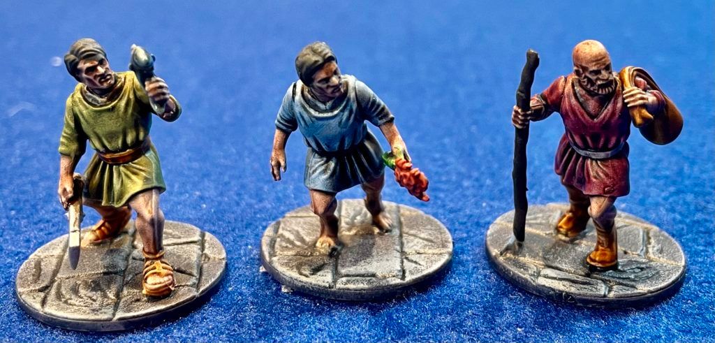 Roman Civilians using bodies from Wargames Atlantic Roman Civilians and arms from Fantasy Villagers sets.