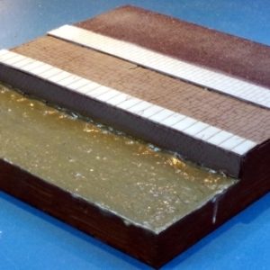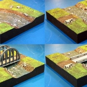Supplied unassembled. A piece of 2″ polystyrene, wood glue, superglue, sand and paint are also required to complete terrain tile.