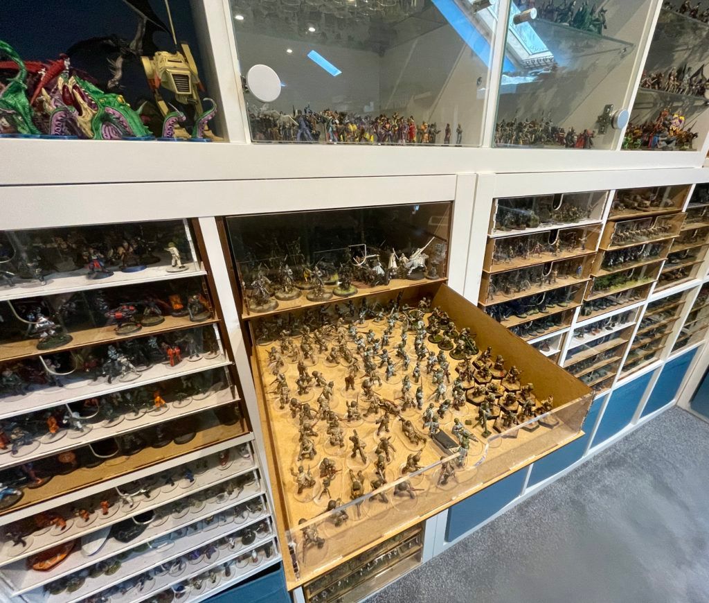 I have used IKEA Kallax units for all storage. The room has two runs of units along either side wall, more under the games tables and against the far wall where I am in the process of moving all of my miniatures out of boxes and into figure drawers. The figure drawers are something which I have designed to fit five drawers into a standard IKEA Kallax Cube. They were designed to house my own collection, but as there has been a lot of interest in them. I have also made them available to purchase on the Sally 4th Website. Click here to take a look at the Kallax Drawer information page.