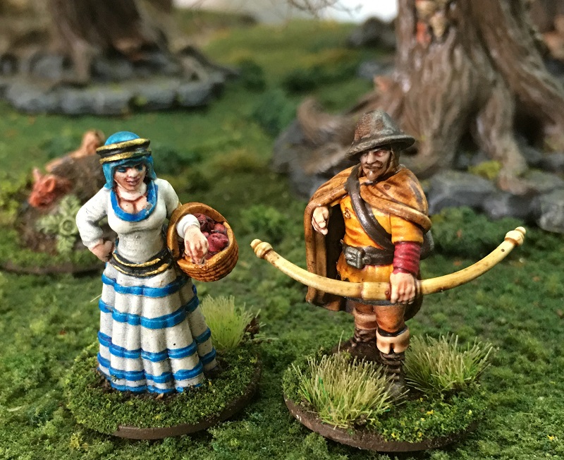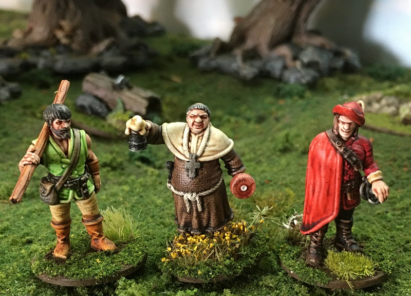 This weekends figures have all come from the either the Robin Hood starter set or additional single miniatures. There is also a Sir Guy of Gisbourne Starter set which I am hoping to get painted next weekend. I am normally a big fan of clear basing, so that miniatures blend in with any terrain, but as these figures are going to be used mainly on forest and rural village terrain, I have based to match my Terra-Former terrain tiles.