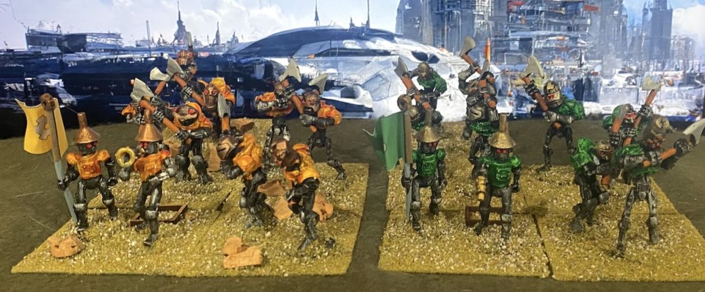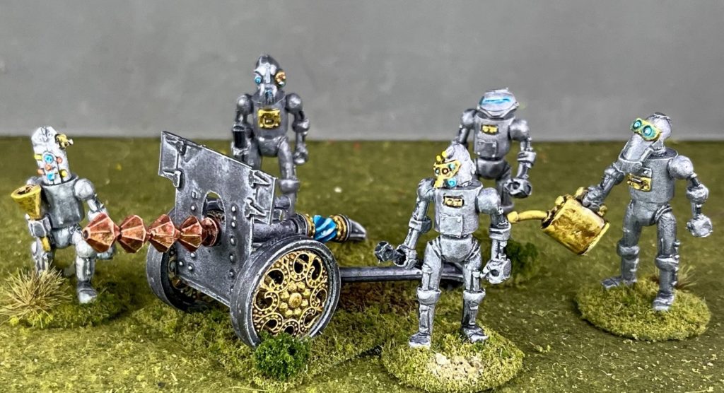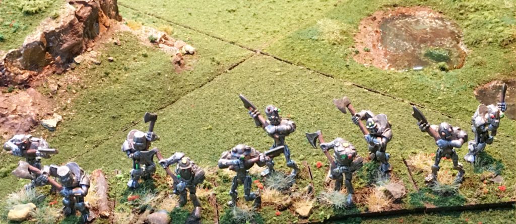The backbone of Nitpick’s army are regiments of hard hitting melee troops, primarily Mechanical Axemen. These troops are hard hitting, heavily armoured and know no fear being programmed to continue fighting, what ever the odds.