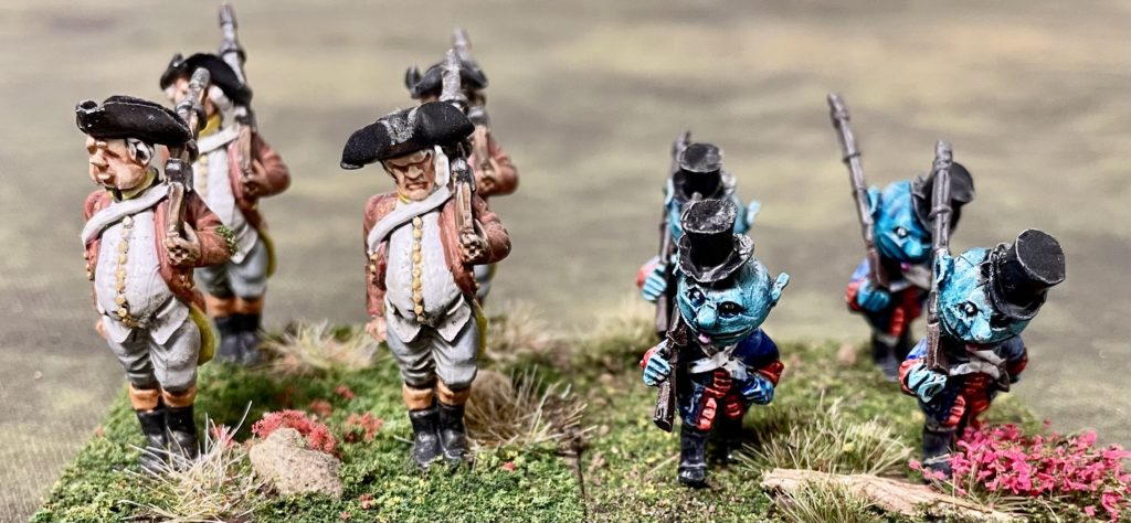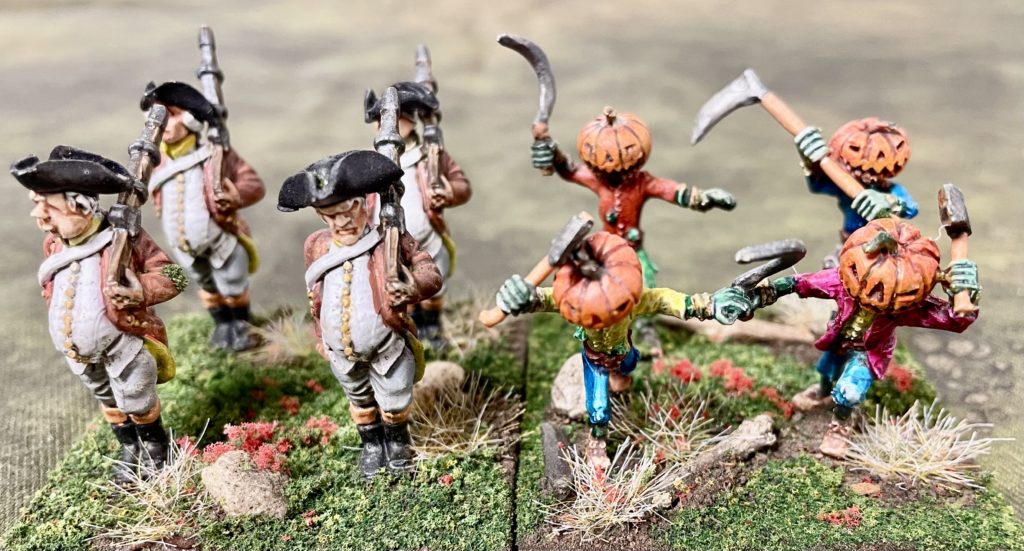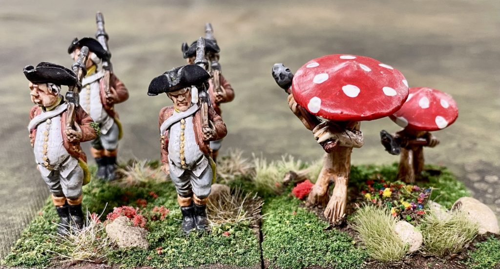 Although Quadlings are approximately the same height (maybe a little taller) than ‘normal’ humans, it is when you do a left turn and look at them from sideways on, you notice that they differ in ‘bulk’ to historical miniatures. Quadlings like there food, particularly there desert course and there tummies are testament to this. Saying that, during development of the game, lots of 28mm historical miniatures stood in for the peoples of Ozz!
