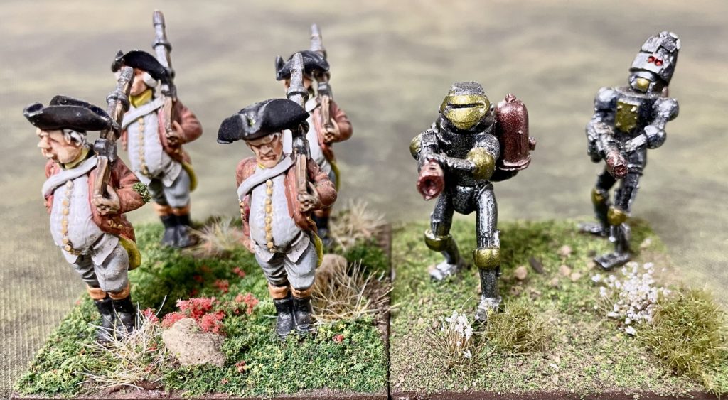 The aim of this post is to illustrate the relative size of Wars of Ozz miniatures against some standard sized historical 28mm miniatures and then use a benchmark stand of Wars of Ozz Quadlings to show the relative size of the peoples and creatures within the Wars of Ozz range.