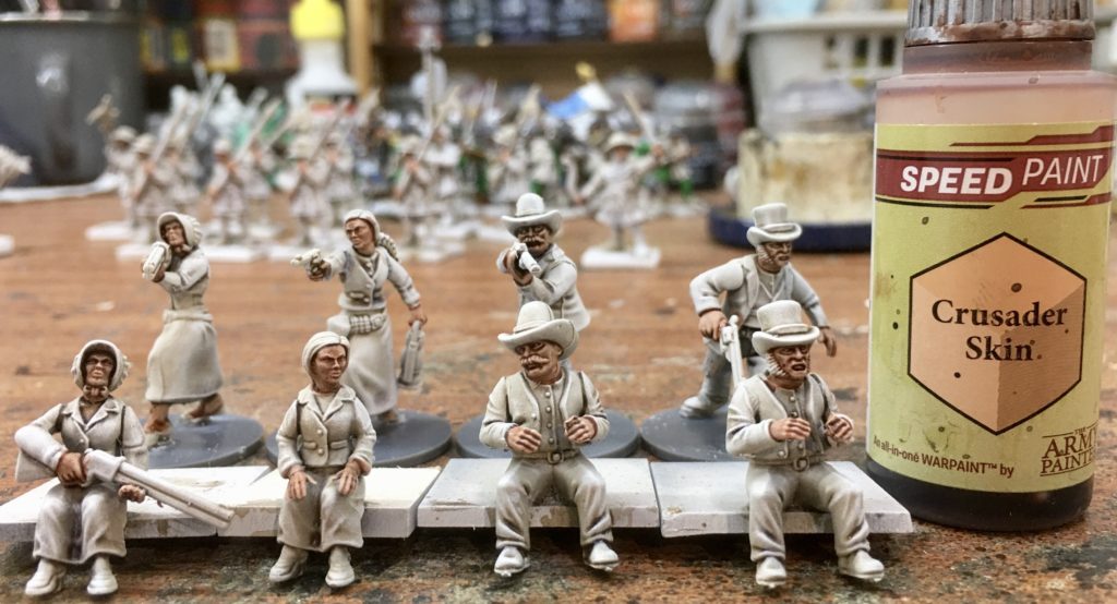 Faces and hands painted with Crusader Flesh. This is my favourite flesh tone, I love the way it highlights.