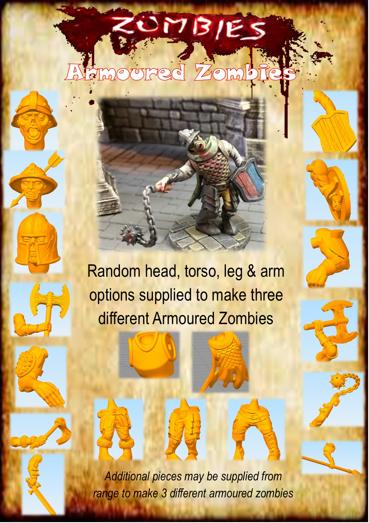 Heads, Torsos, Legs & Arms selected at random to make three different armoured zombies.