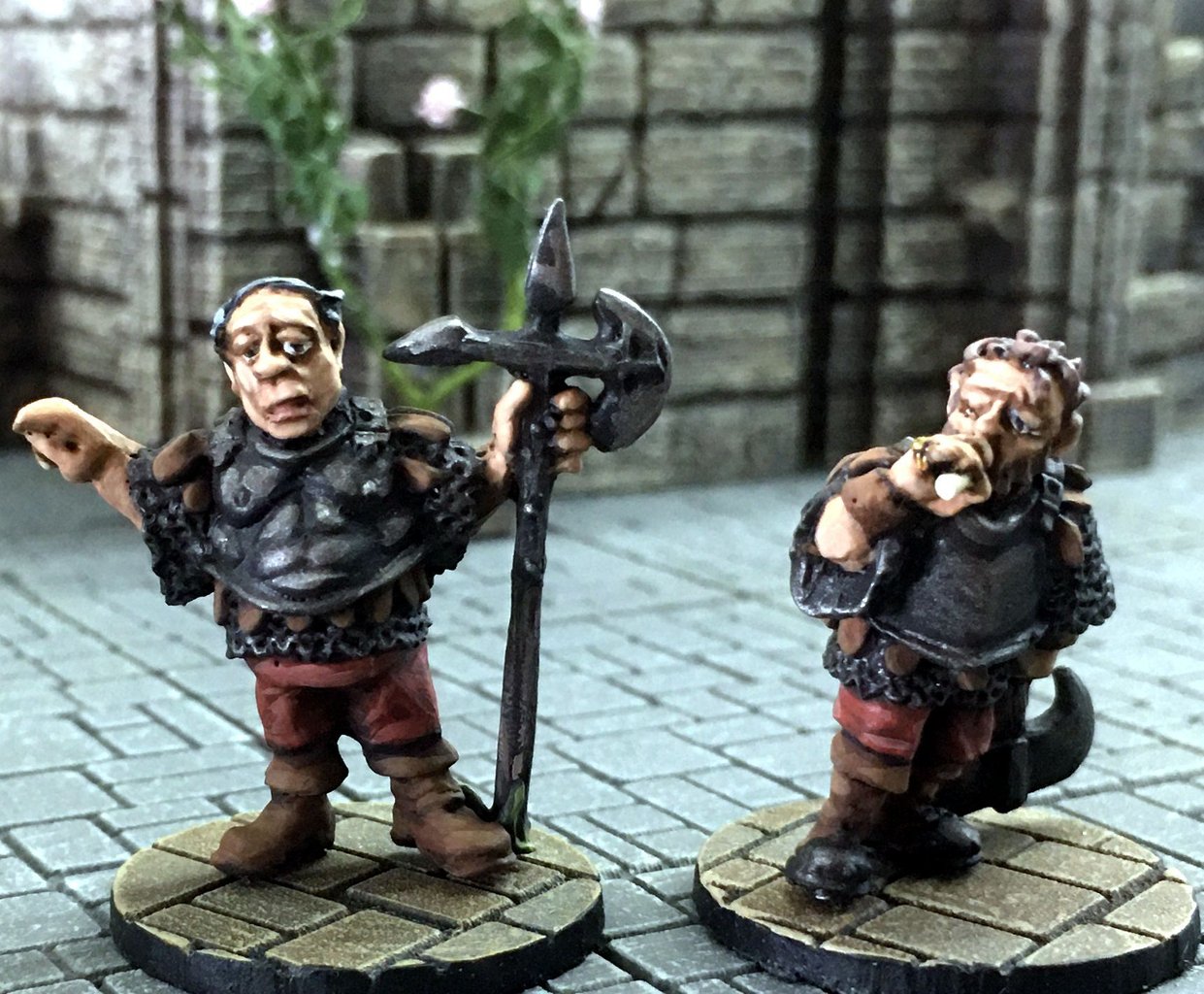2 x characterful 28mm fantasy miniatures supplied with 25mm round black slot bases