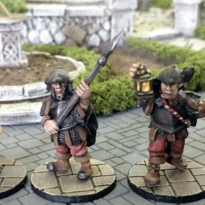 2 x characterful 28mm fantasy miniatures supplied with 25mm round black slot bases
