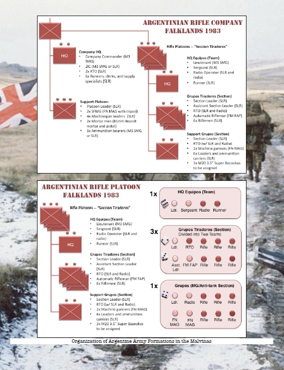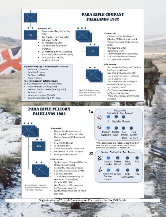Supplement contains period specefic rules together with detailed platoon level organisation charts for British and Argentinian Forces.