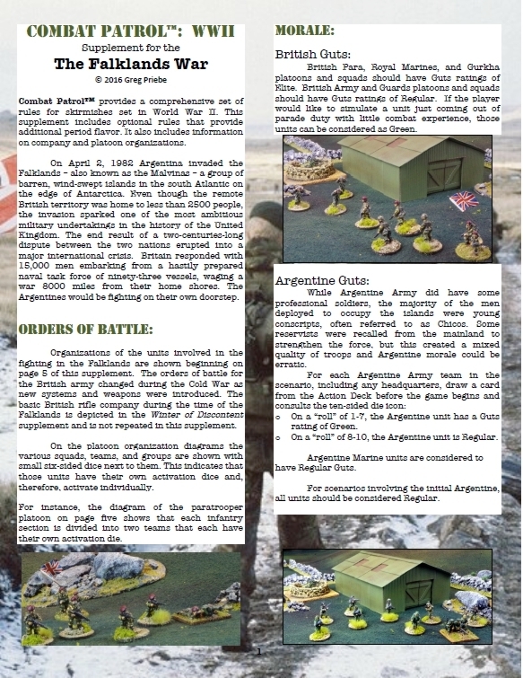 Free download of Combat Patrol TM supplement for the Falklands War 1982