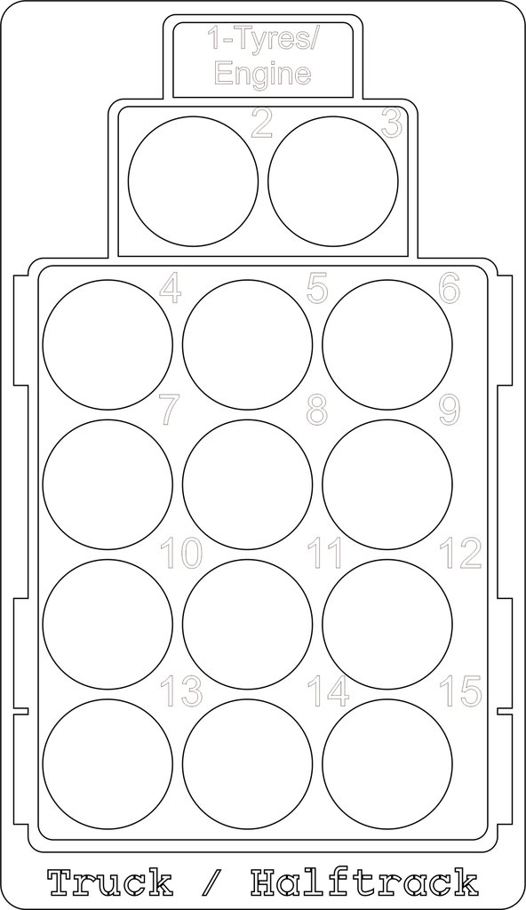 If vehicle is hit, the hit allocation data is engraved on to template so that you can easily determine who has been hit.