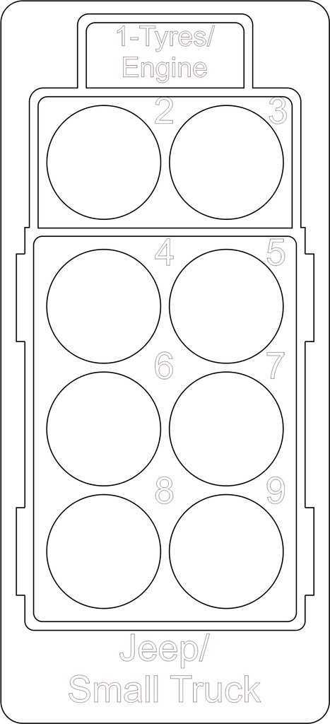 Made from double thickness of 2mm MDF. Use it like a movement tray to move miniatures that are travelling inside vehicles.