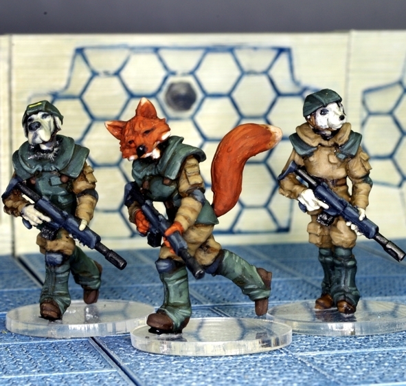 Pack contains 3 x EDF Heavy Infantry armed with LAKW 1-56 Assault Rifles and a randomr heads (EDF combat helmet / bare headed)