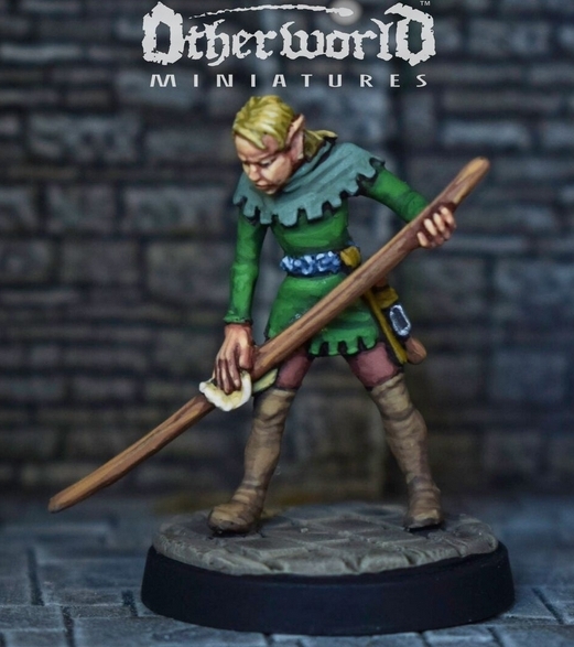 It is an Elvish Bowyer, depicted working on a new bowl, and cast in pewter as a single piece model. It is supplied with a 25mm round plastic base.
