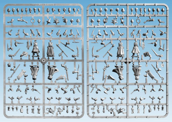 This sprue allows you to build 4 different models to play in the game Frostgrave. . It includes a huge selection of heads, arms, equipment, and familiars, so much so that no two wizards need ever be the same again!