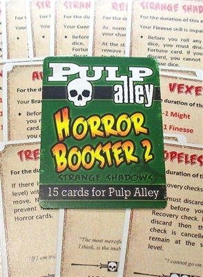 The STRANGE SHADOWS pack includes 15 cards to add to your Pulp Alley Horror Deck for even more mind-rending fear and insanity!
