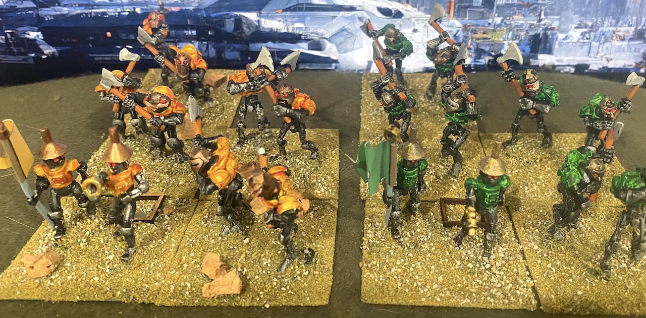 Contains ten mechanical axeman with seperate heads