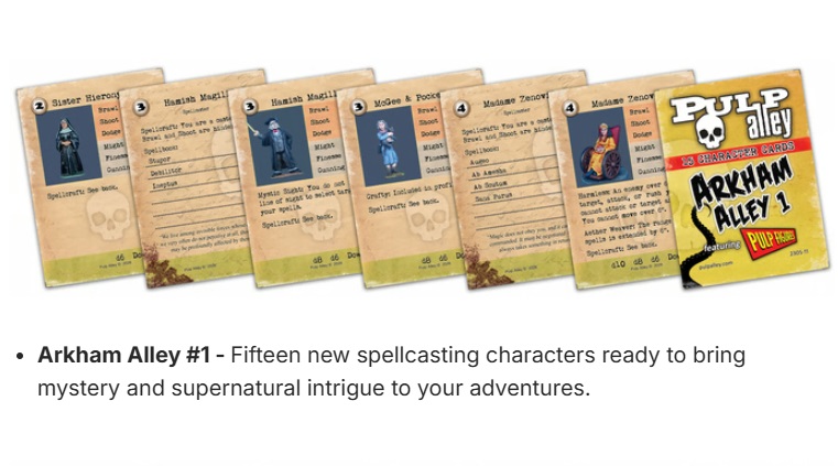 Arkham Alley #1 – Fifteen new spellcasting characters ready to bring mystery and supernatural intrigue to your adventures.