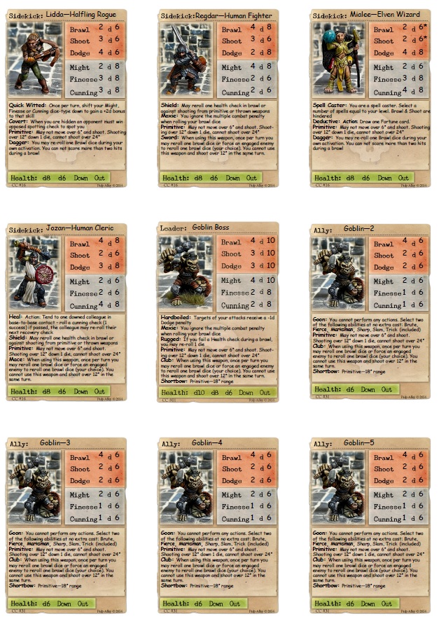Characters cards for Pulp Alley based Swords & Sorcery style gaming.