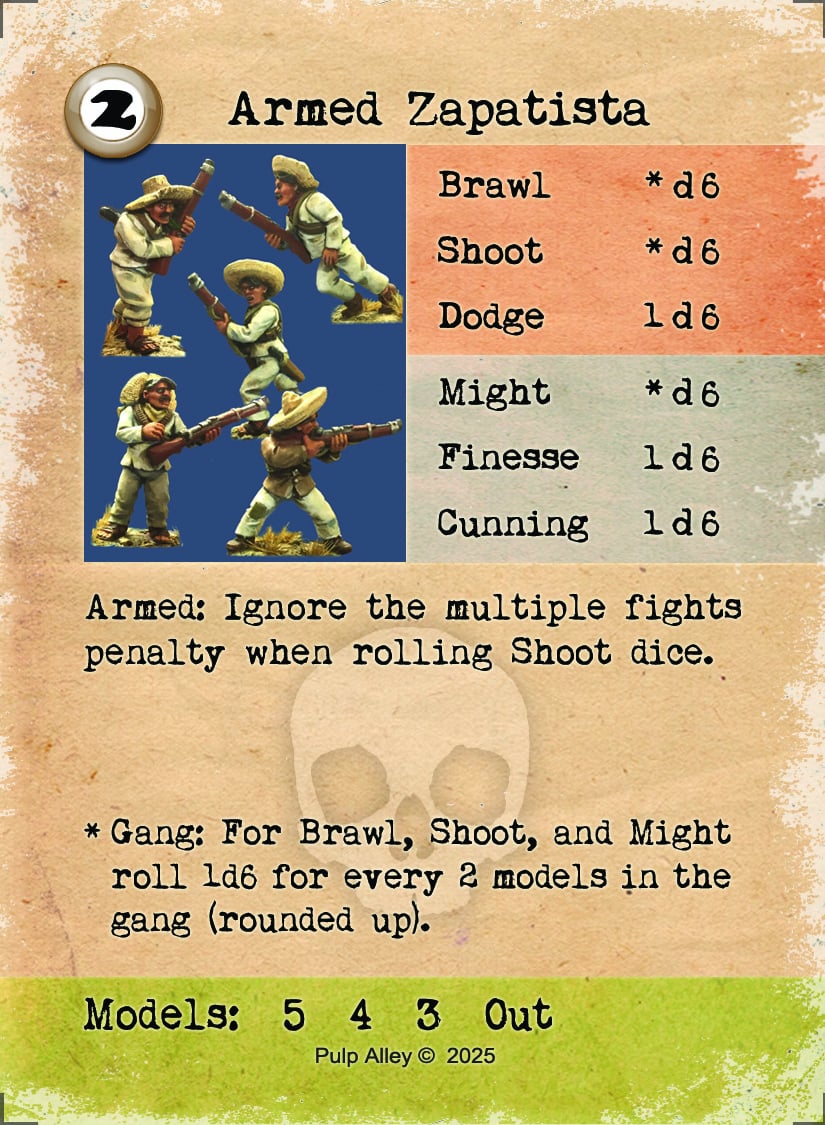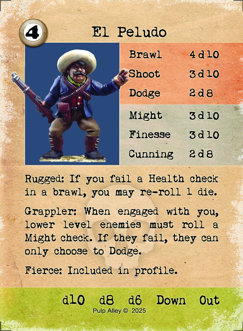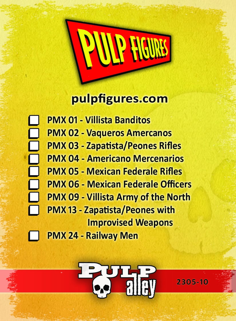 These Character Cards match the packs of 28mm miniatures from Pulp Figures South of the Border Range