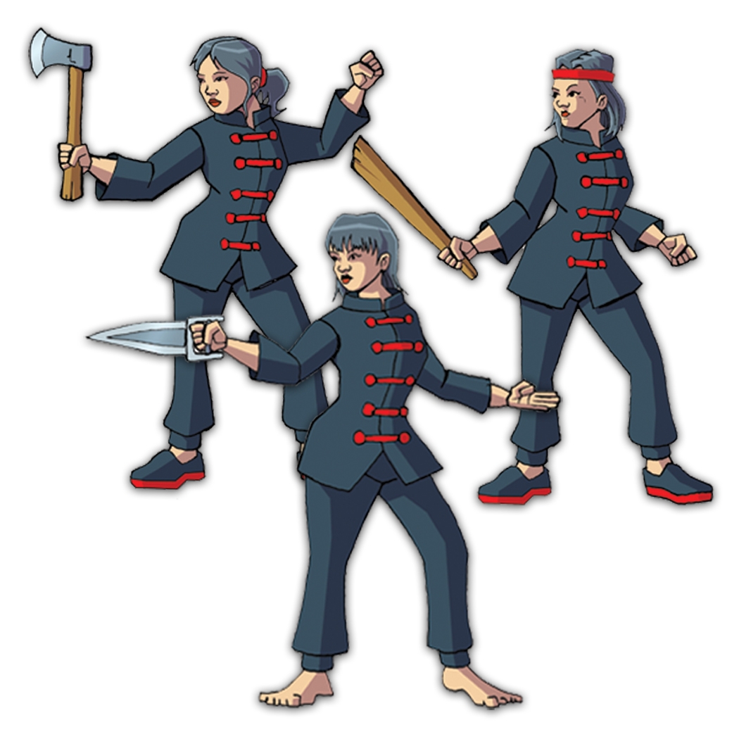 Koi, Mei, & Bai: Includes three metal miniatures, weapons, bases, and league cards.