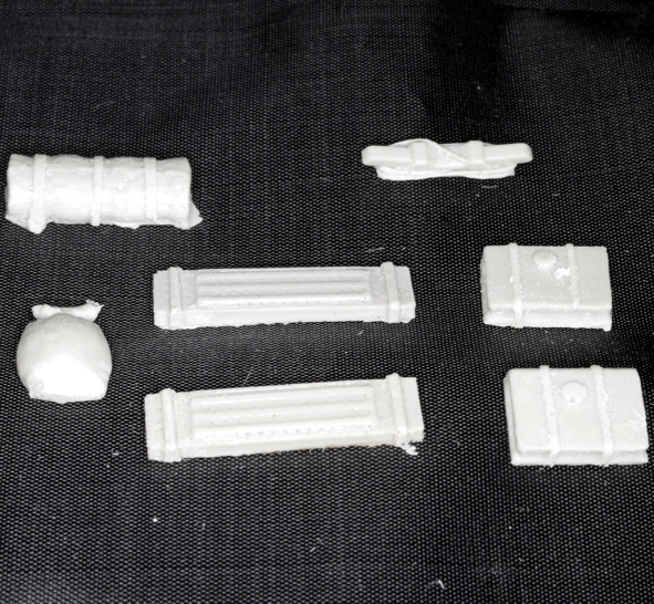 7 pieces of vehicle stowage, cast in resin to add detail to vehicles