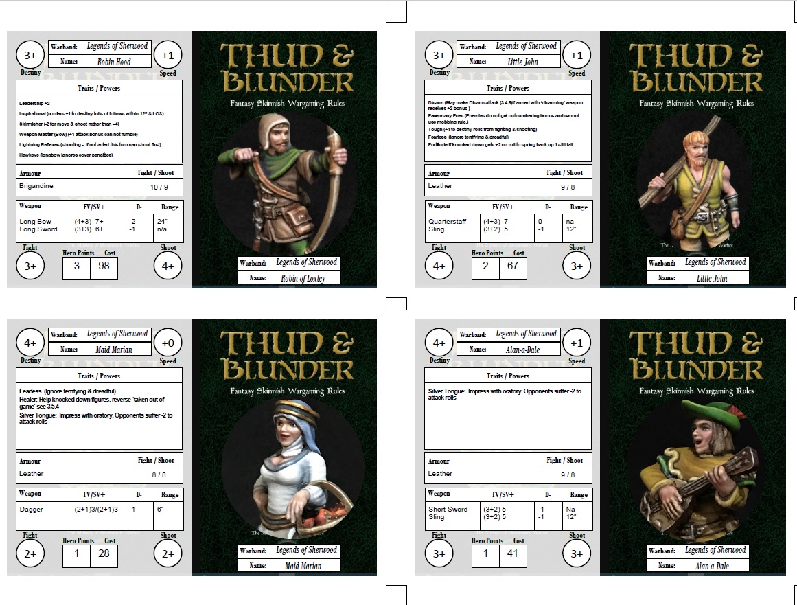 Check out our Hobby Blog article “Legends of Robin Hood – Foiled at the Bay” for a Thud & Blunder battle report using these character cards.