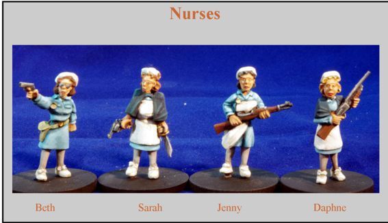 Set contains 4 x 28mm scale metal miniatures depicting WW2 era US Army nurses who have picked up abandoned weapons to aid in last ditch defence