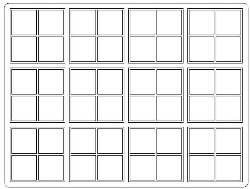 Laser cut from 3mm MDF, these bases holds 4 miniatures mounted on 20mm Square bases to form an element base 56mm square for Wars of Orcs and Dwarves.