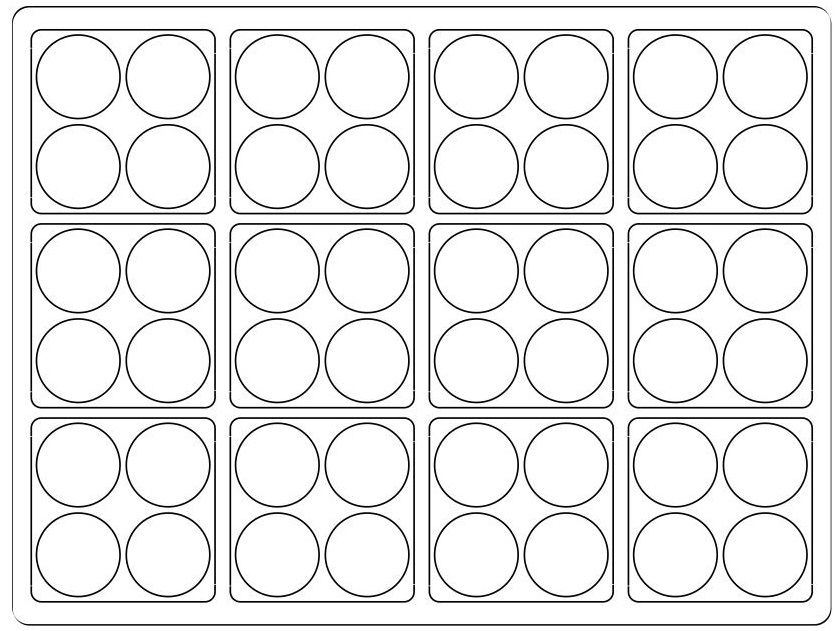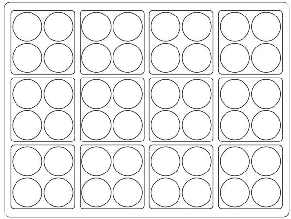 Laser cut from 3mm MDF, these bases holds 4 miniatures mounted on 25mm round bases to form an element base 56mm square for Wars of Orcs and Dwarves.