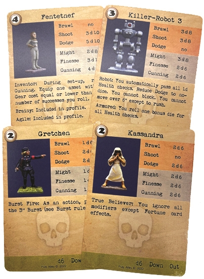 This deck includes 50 pre-made character cards featuring Pulp Figures miniatures. In addition, the backs may be used to create your own thrilling pulp heroes and villains.