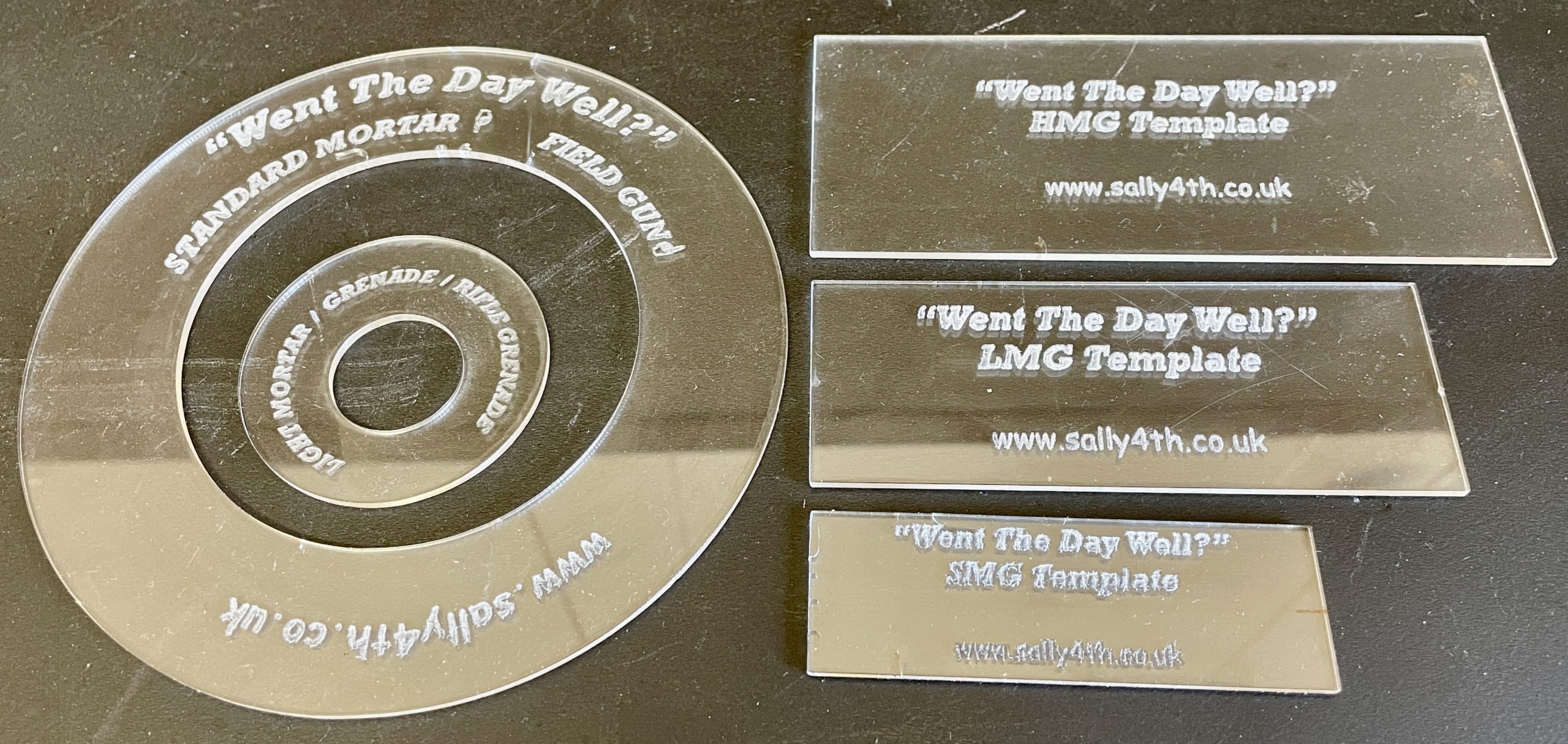Laser Cut Clear Perspex Templates for VBCW gaming with ‘Went the Day Well’ rules.