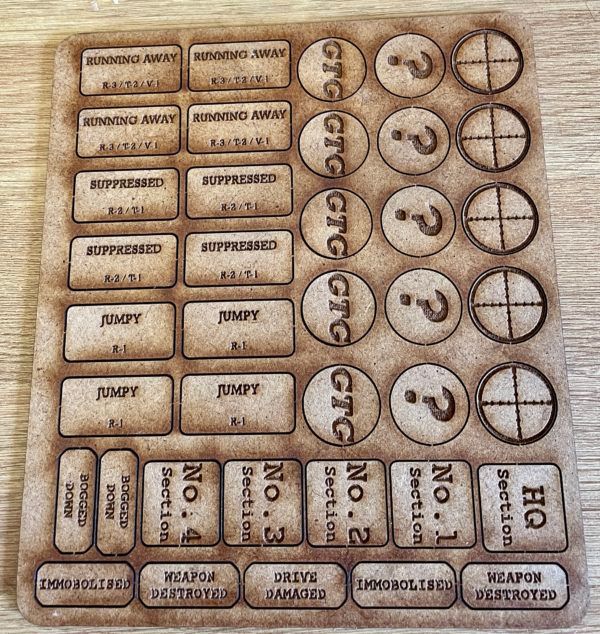 MDF laser cut tokens for VBCW gaming with ‘Went the Day Well’ rules.