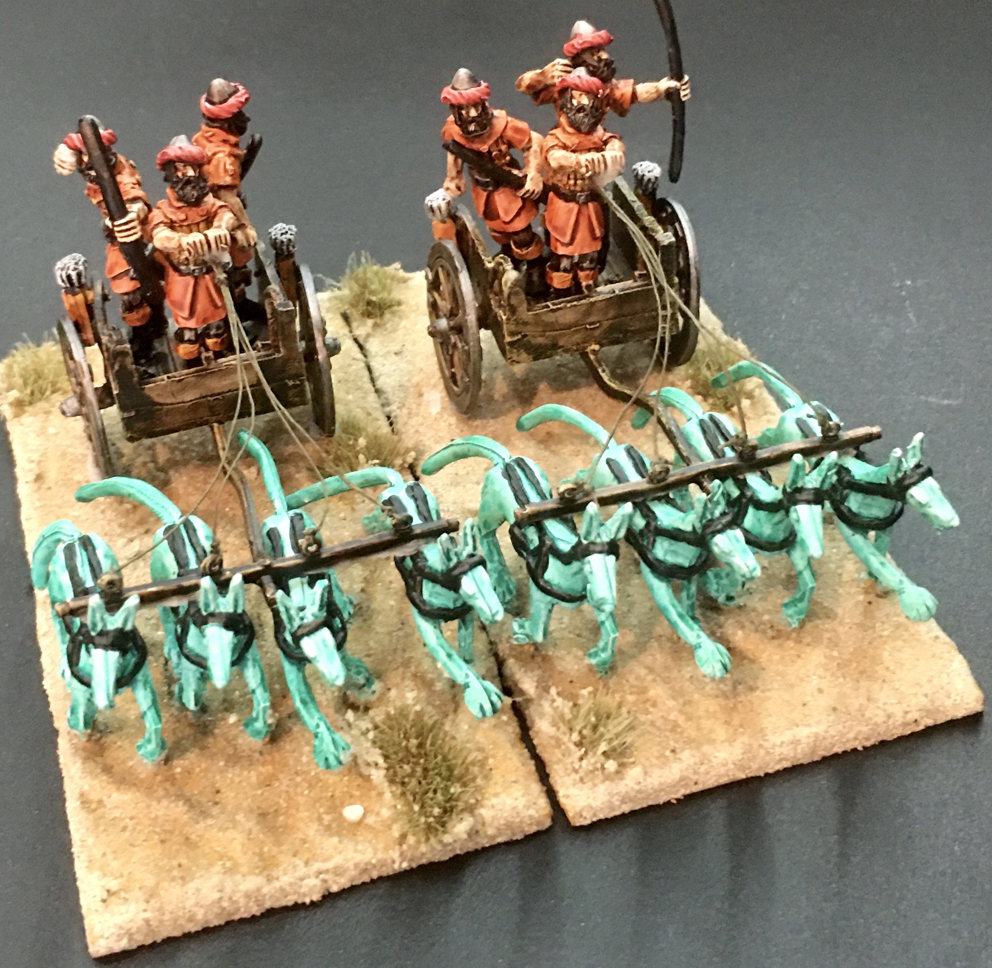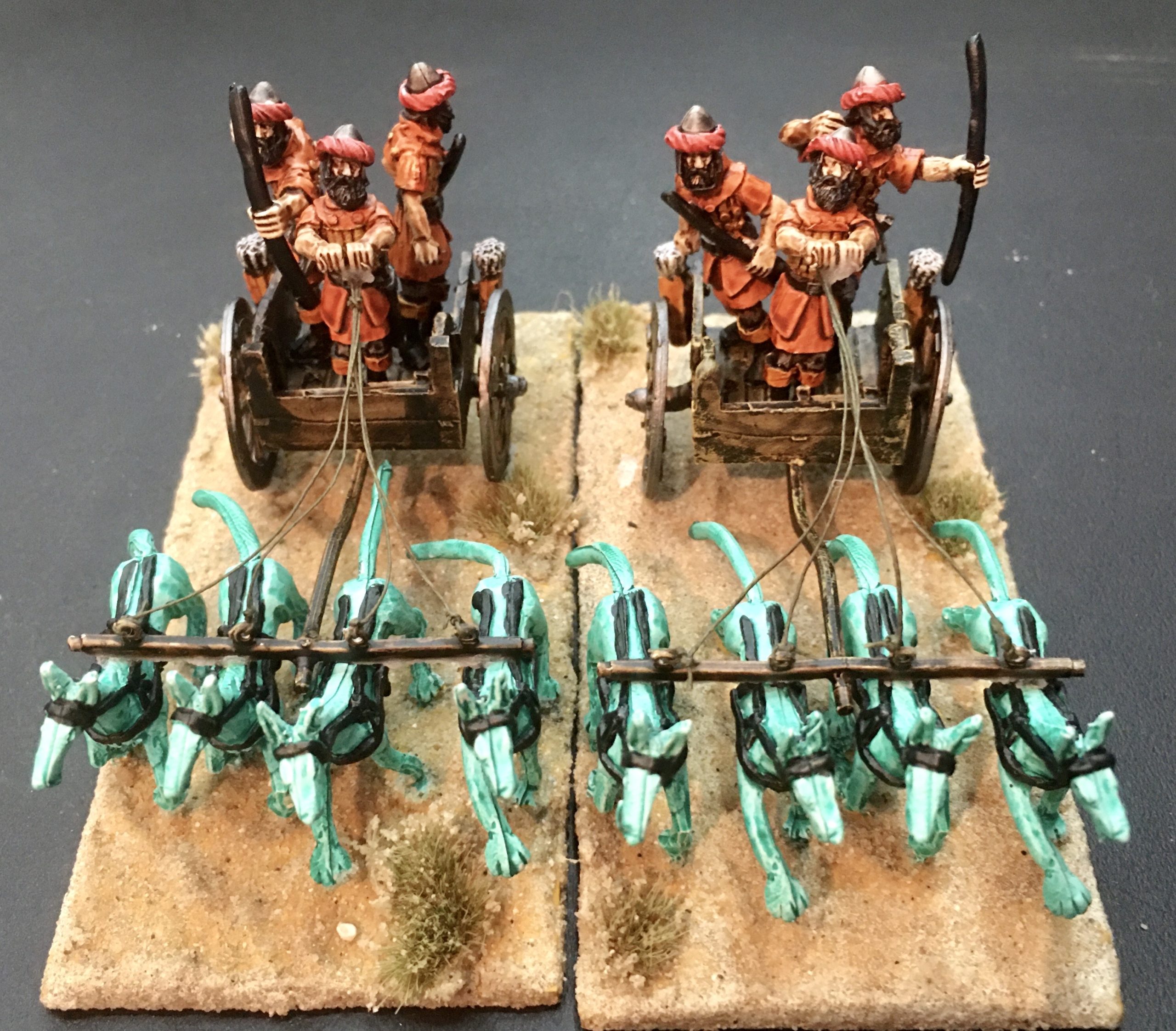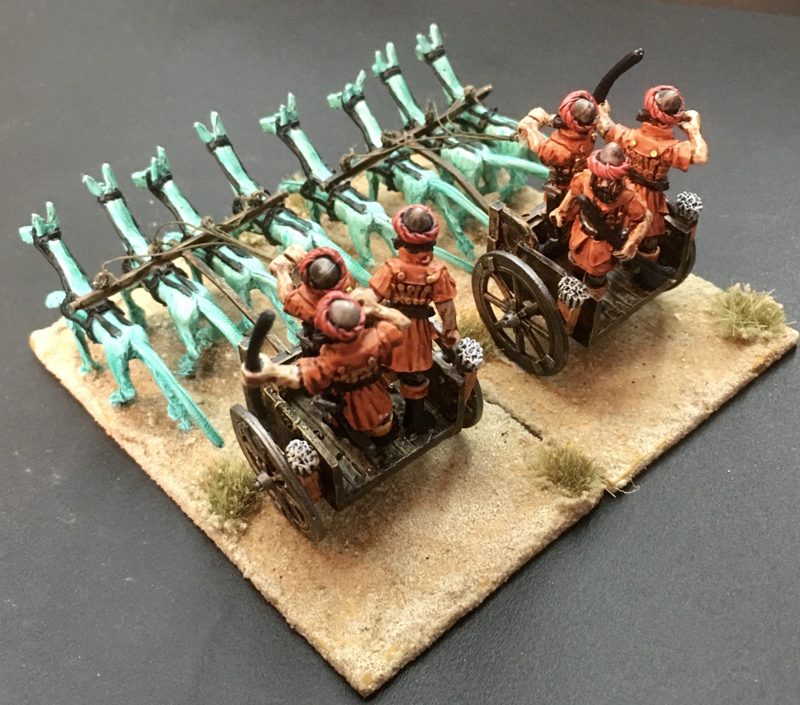 There is 1 Chariot, 3 Crew and 4 Aepyer per pack. Product supplied unpainted.