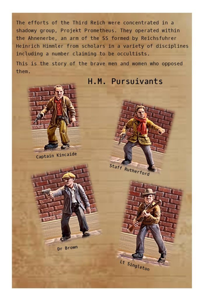 I have designed a set of Pulp Alley Character Cards for Pursuivant Agents, Germans, Guard Dogs & Deep Ones. I will add additional adversaries as our campaign gets underway. You can click here to download the Free Character Cards. If you have not played Pulp Alley before, Click here to find out what it is all about. The page also includes links to download a free copy of the Pulp Alley introductory rules.