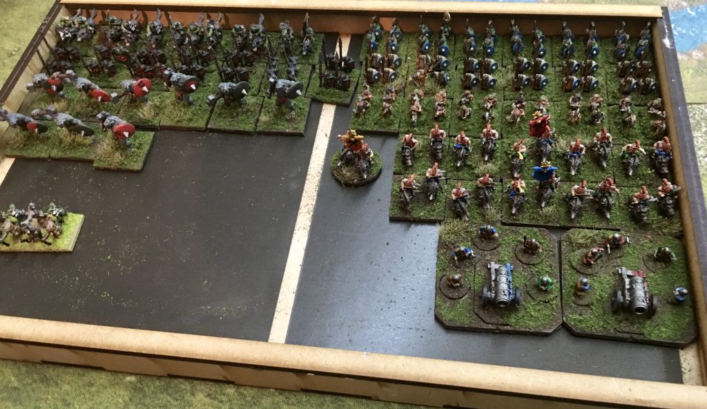 Welcome to week six of my getting started with tabletop gaming on a budget blog. If you’ve not read the first weeks blog, it’s worth catching up on as it explains the parameters or rationale, and the thoughts behind the project. In essence the project is about getting started in the miniatures gaming hobby, with mass battle gaming on a budget equivalent to a box of fags a week with a space limitation that the game must be playable on a kitchen / camping size table and all the armies, terrain and accessories must fit inside a single 9 litre Really Useful Box.