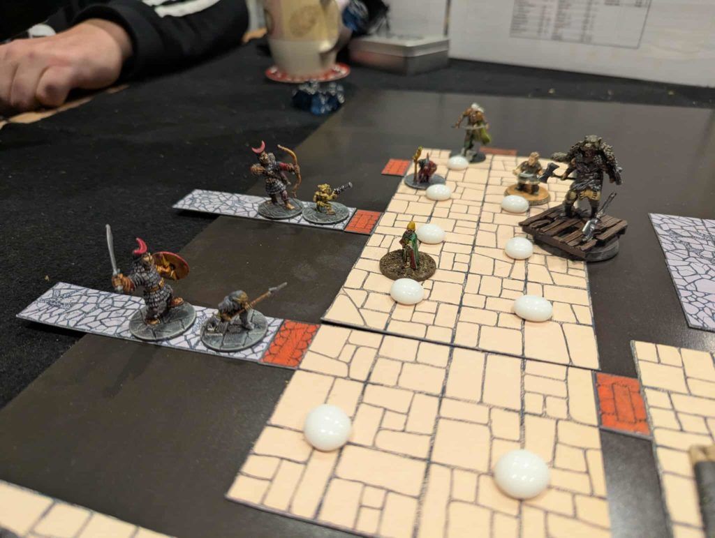 The battle raged in choking violet haze. Goblins fell. Hobgoblins snarled and bled. Eventually, the flanking attackers were broken, retreating back into their passages.