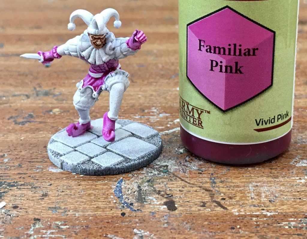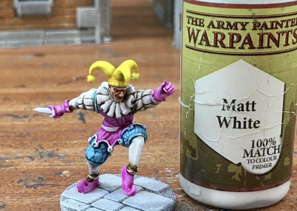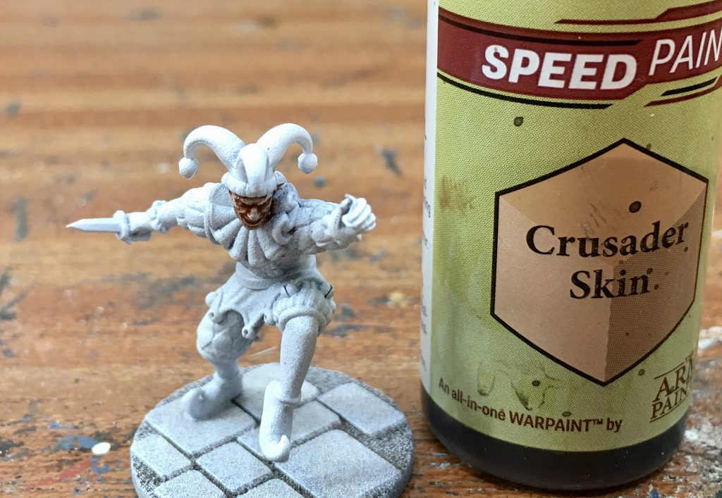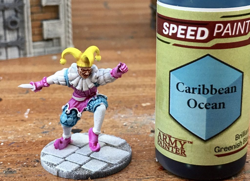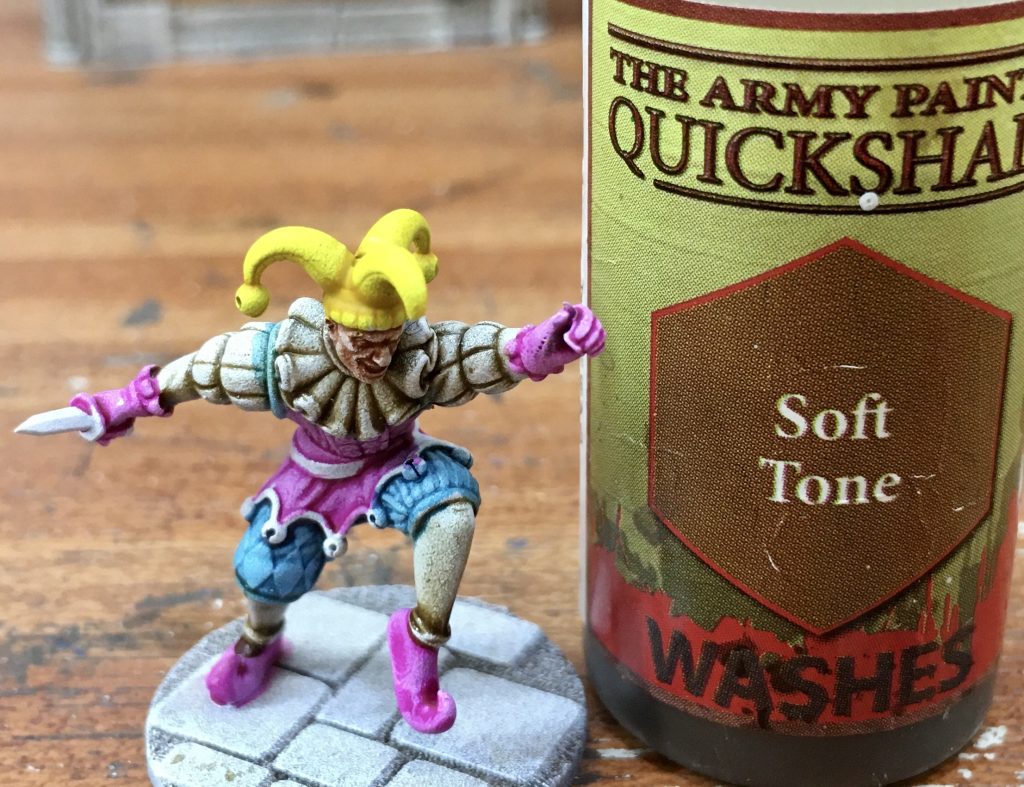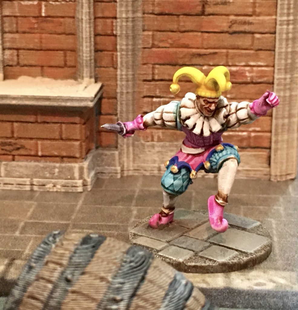 With a few days left to run on the WaterSpire Kickstarter which completes on Friday 19th, I am trying to put together a quick and easy painting guide to get ‘gaming quality’ miniatures on the table in double quick time. This morning I have painted ‘The Clown’.