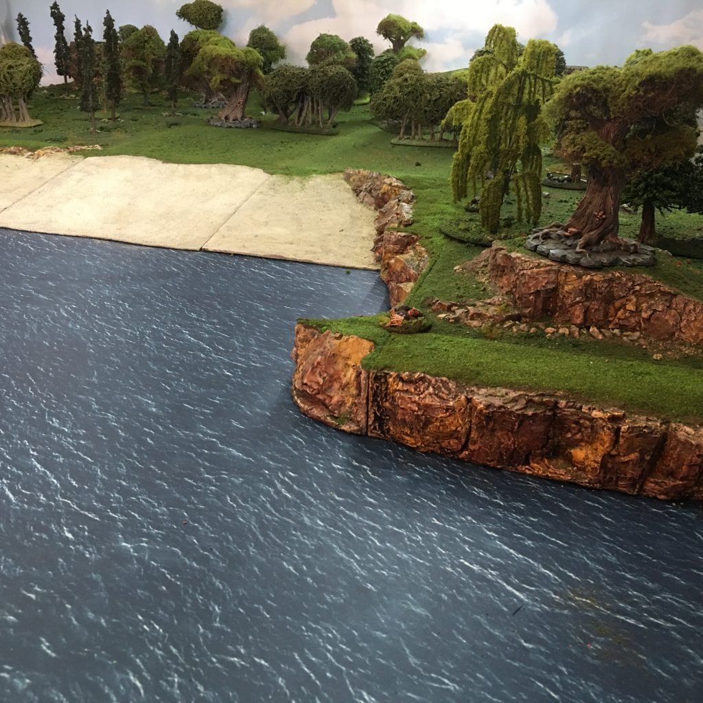 My plan is over the next couple of months to develop a Viking settlement from the first few buildings to a thriving bustling dark age port. To facilitate this I have built a few custom ‘Terra-Former’ tiles to add to my modular terrain collection. These include some rocky coastline edges that adhere to standard 12″ Terra-Former tiles and three beach tiles.