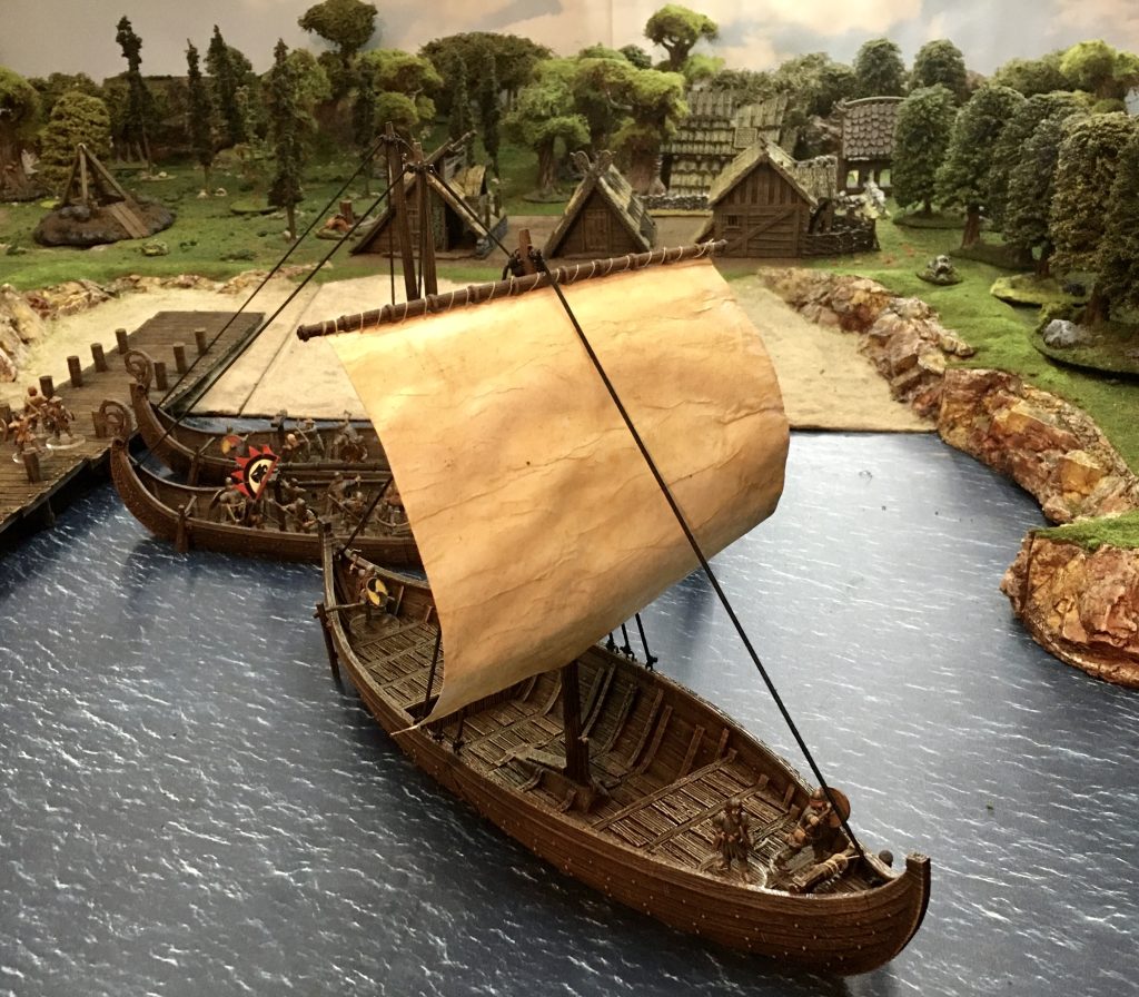 Over the last month I have been test printing and painting some of the beautiful models that are going to feature in my good friend, Iain Lovecraft’s Viking Saga Kickstarter. I wrote a blog a few weeks ago about painting and rigging the very accurate Viking Longboat, or Drakkar. Today we are looking at the Knarr or Viking Trading ship.