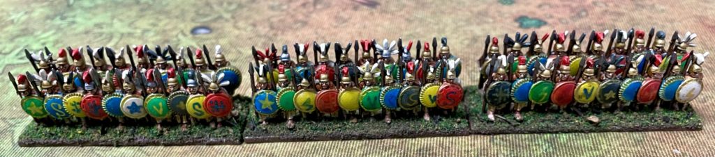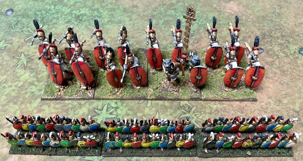 Here’s a comparison shot showing an Epic Punic Wars unit next to a 28mm Punic Wars Unit from my collection. Miniatures are 28mm Wargames Foundry Metal Castings… plastic was not available when these were first collected.