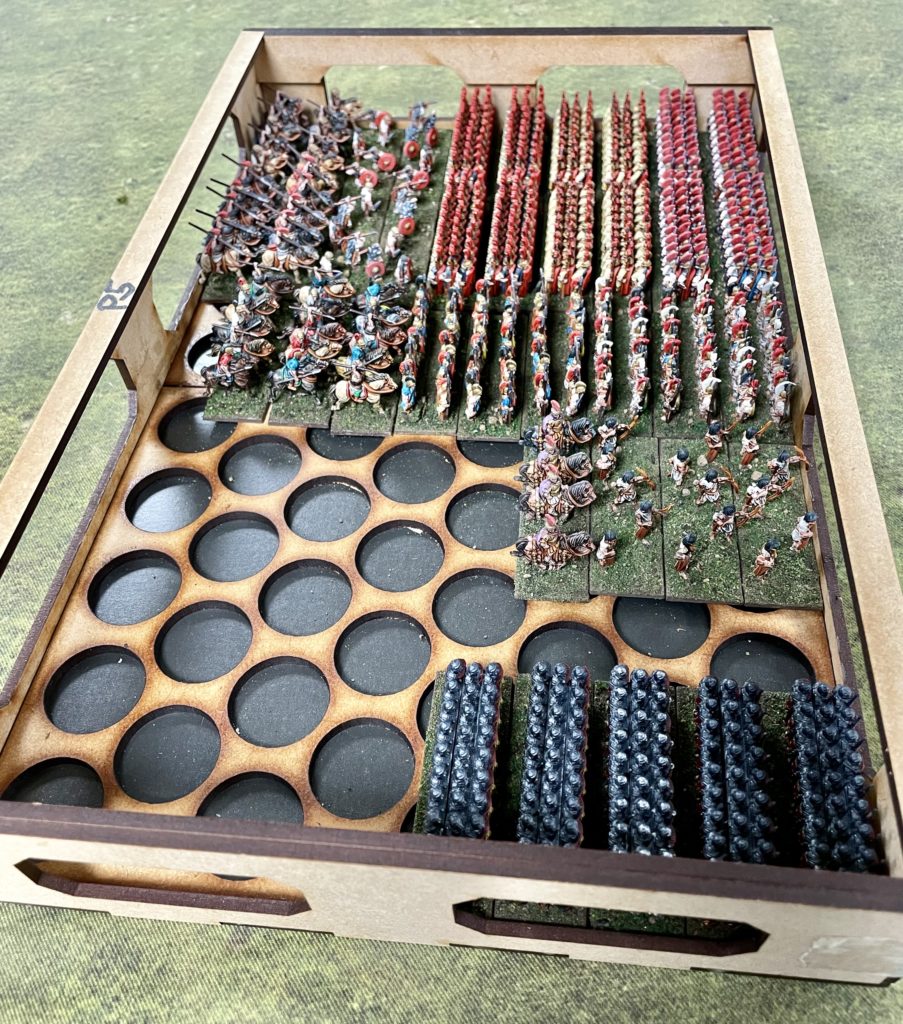 As well as being light and robust, the epic models take up very little storage space. This photos shows what I have painted so far in a Sally 4th Really Useful Box Tray. This tray is 35mm high. Four of them sit inside a 9 litre Really Useful Box, so in reality you will probably get both armies, terrain, rulebook and player aids all inside one Really Useful Box!