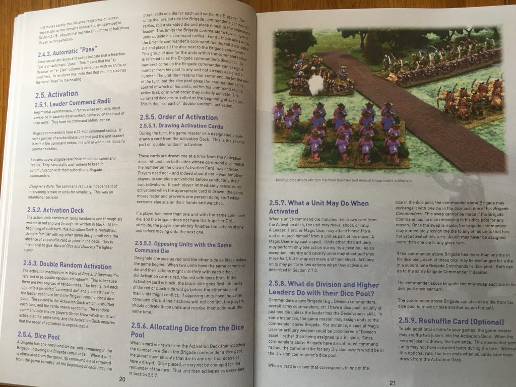 The game uses an activation deck. This contains red 1-6, black 1-6 and two jokers. The deck is shuffled and the first card is drawn. One player / side is Red and the other Black. Lets assume we are the Red Player